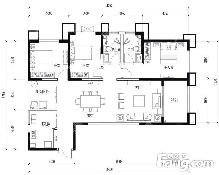 户型齐全,主打户型方正,明卫,主卧朝南三居