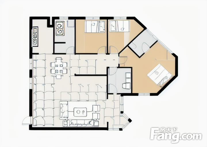 户型齐全,主打户型方正,明厨,客厅朝南三居