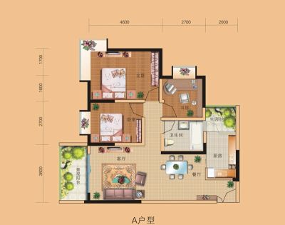 户型齐全,主打户型方正,大面宽阳台二居