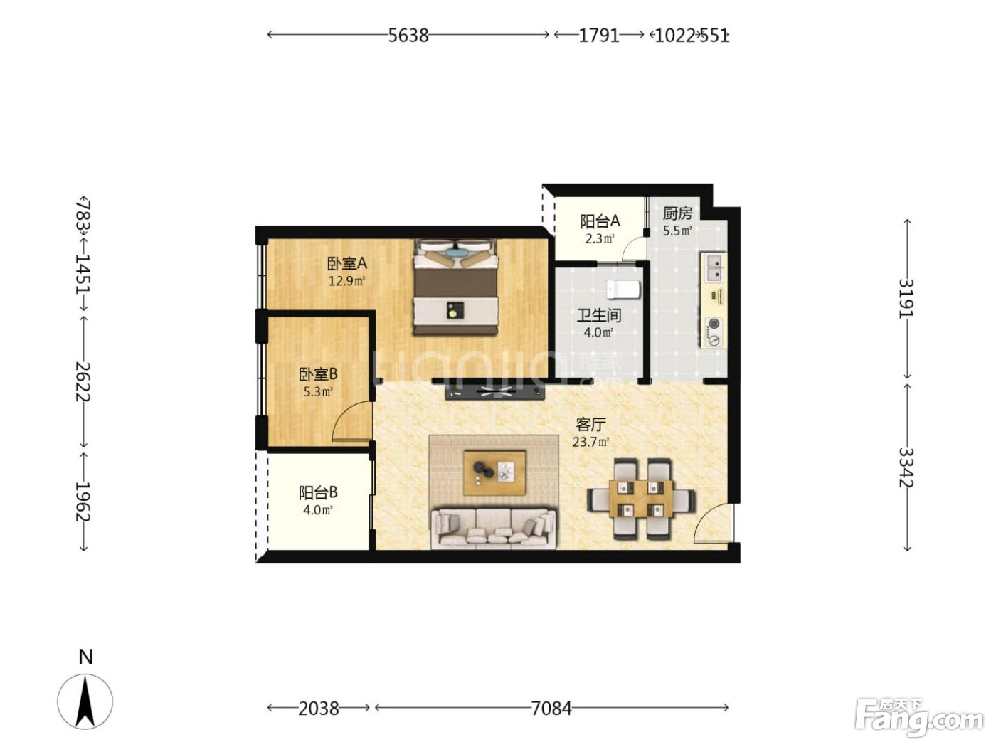 户型齐全,主打南北通透,全明格局,户型方正二居