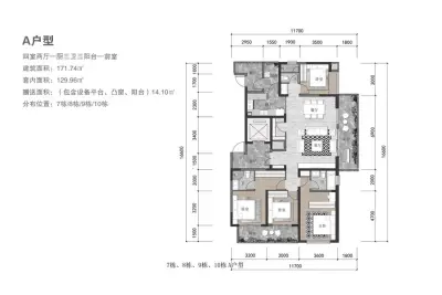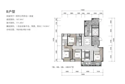 户型齐全,主打户型方正,动静分离,主卧带卫四居