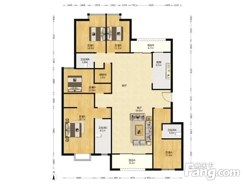 房屋拥有相对宽松的尺寸,布局通透,动静分离,设计豪华