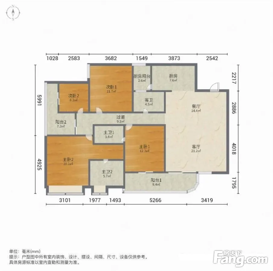 户型齐全,主打明厨,客厅朝南,主卧朝南三居
