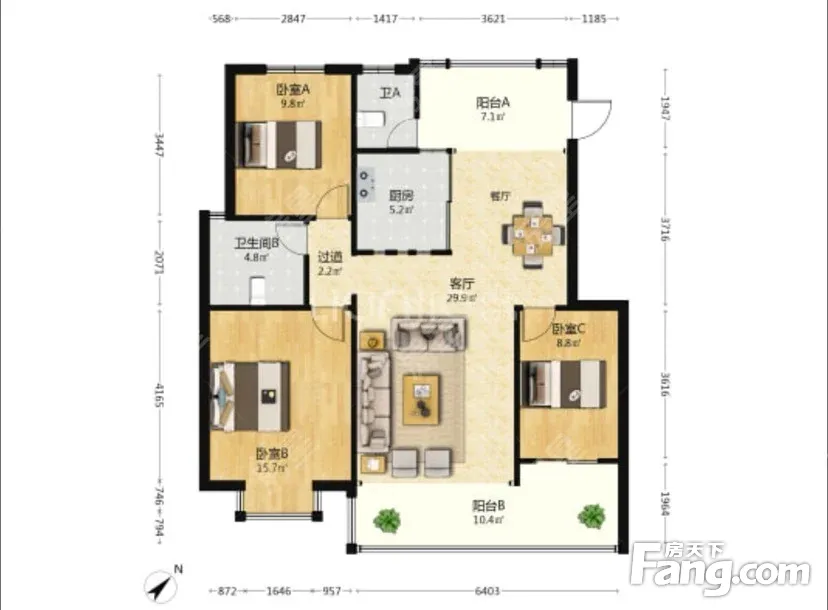 户型齐全,主打明卫,客厅朝南,主卧朝南四居