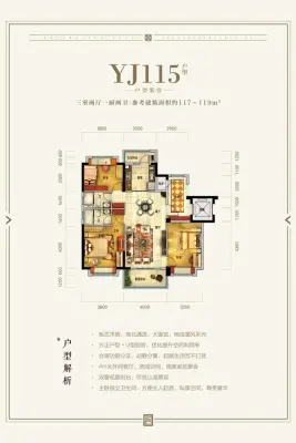 户型齐全,主打户型方正,动静分离三居