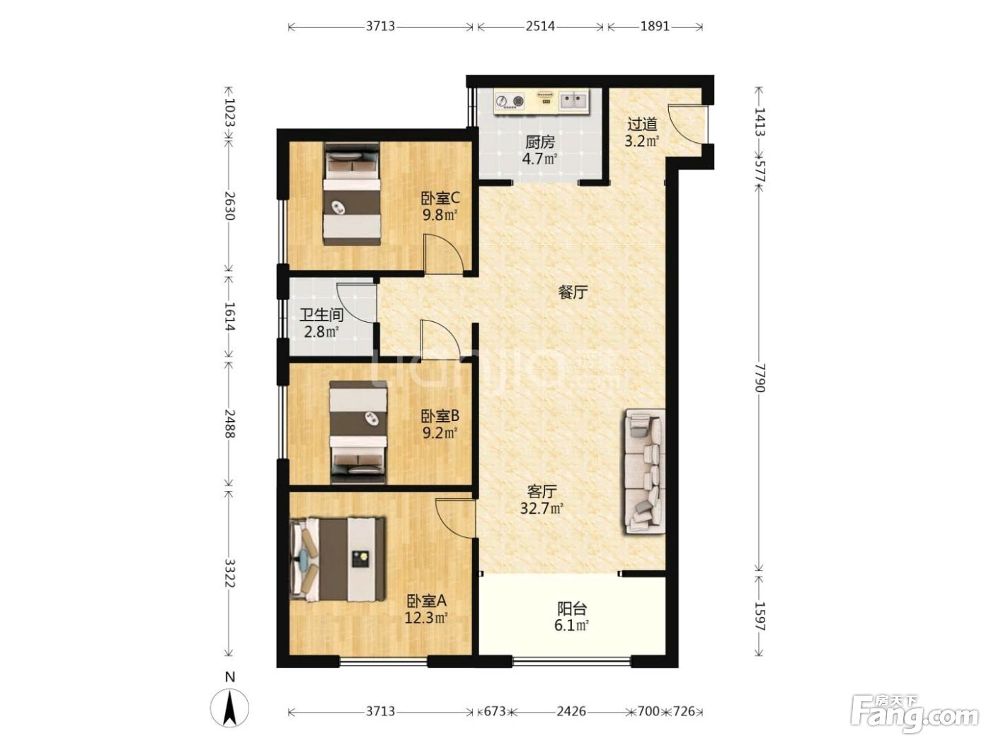 3室2厅1卫