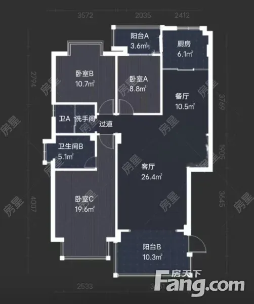 户型齐全,主打户型方正,明卫,明厨,双阳台三居