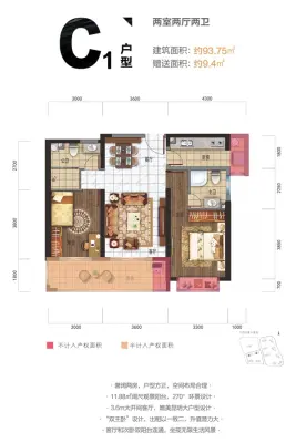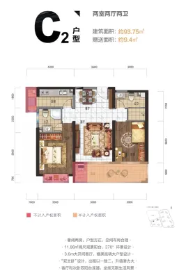 户型齐全,主打户型方正,动静分离二居