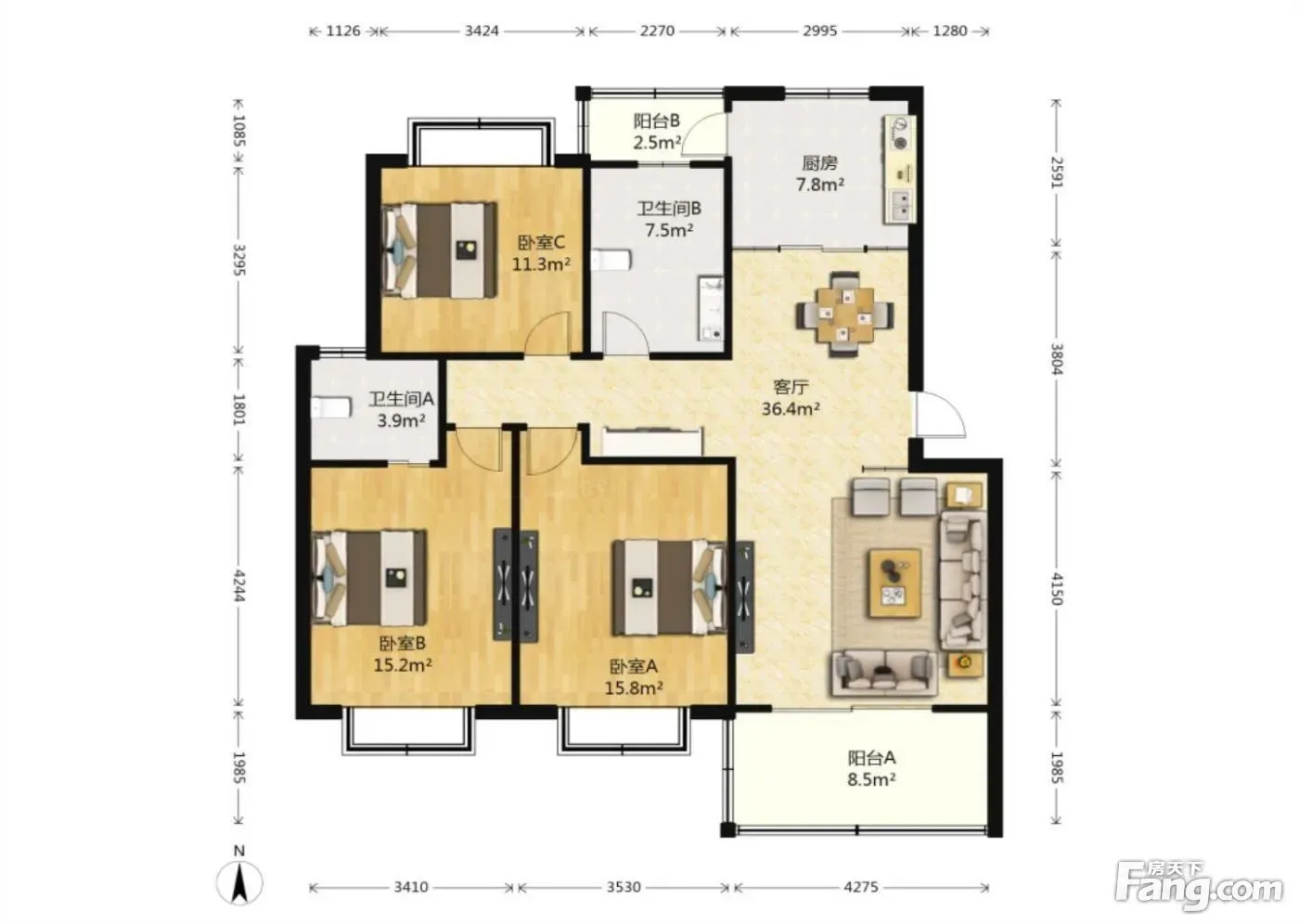 3室1厅2卫