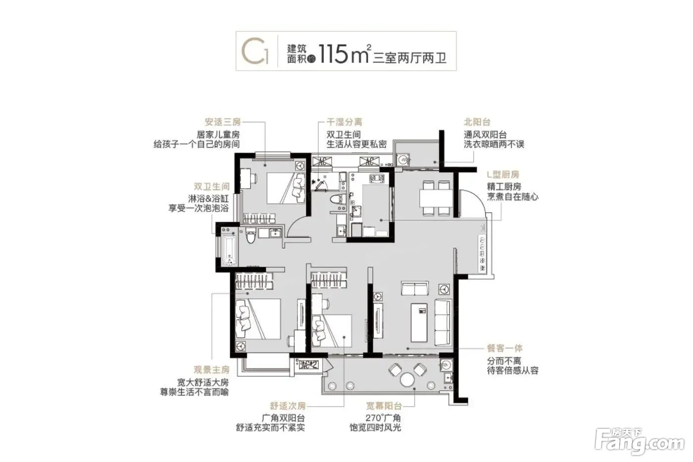 1、户型面积:116平三房两厅两卫,赠送设备平台和阳台约7平 2、全明户型,采光好,视野开阔,格局方正,实用超赞. 3、客厅大气,格局大方,日照充足,厨房宽敞明亮. 4、房子朝向:双朝南,前后无遮挡、南北通透 5、高品质小区,一梯两户,人车分流,小区位。