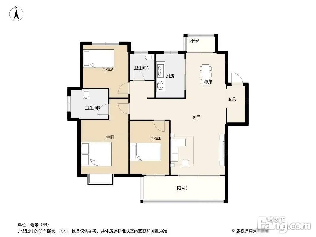 户型齐全,主打全明格局,户型方正三居