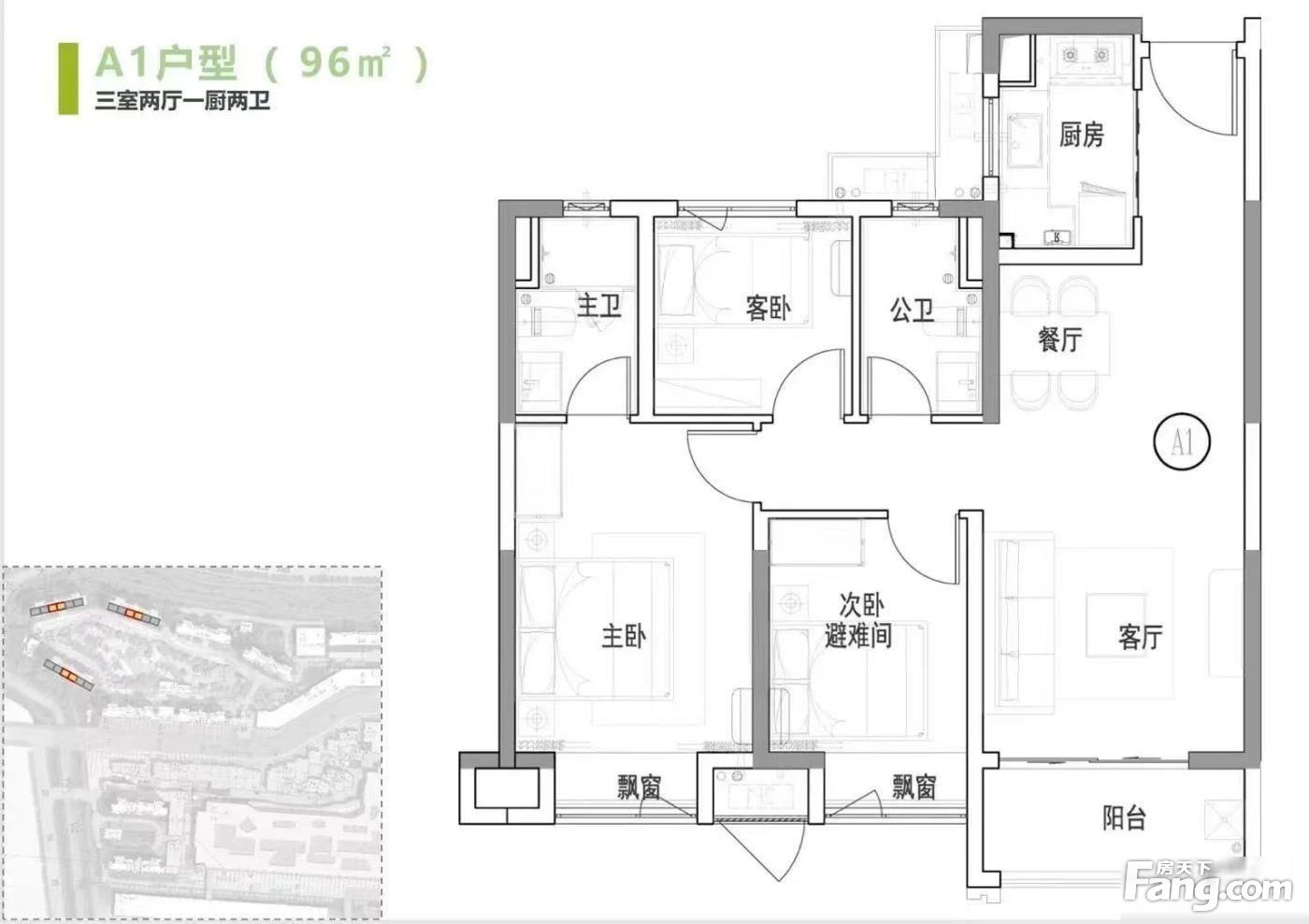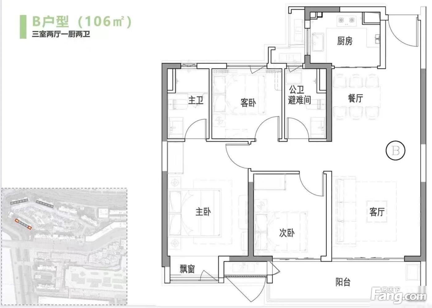 户型齐全,主打全明格局,户型方正三居