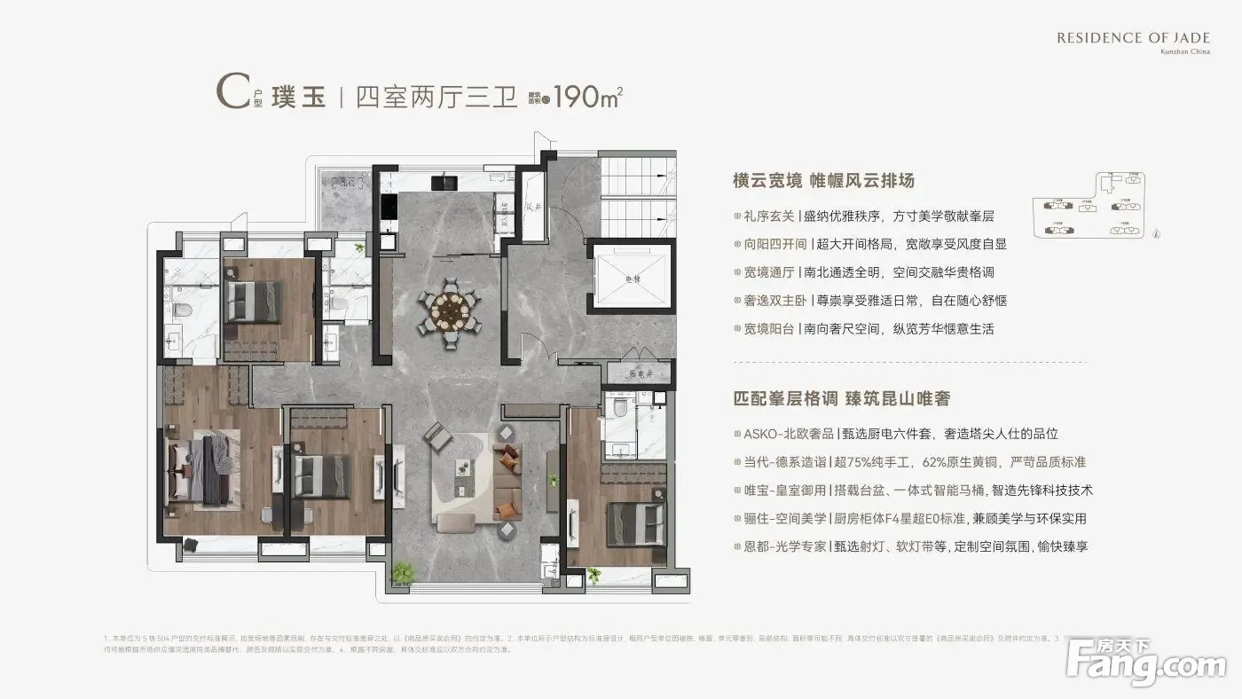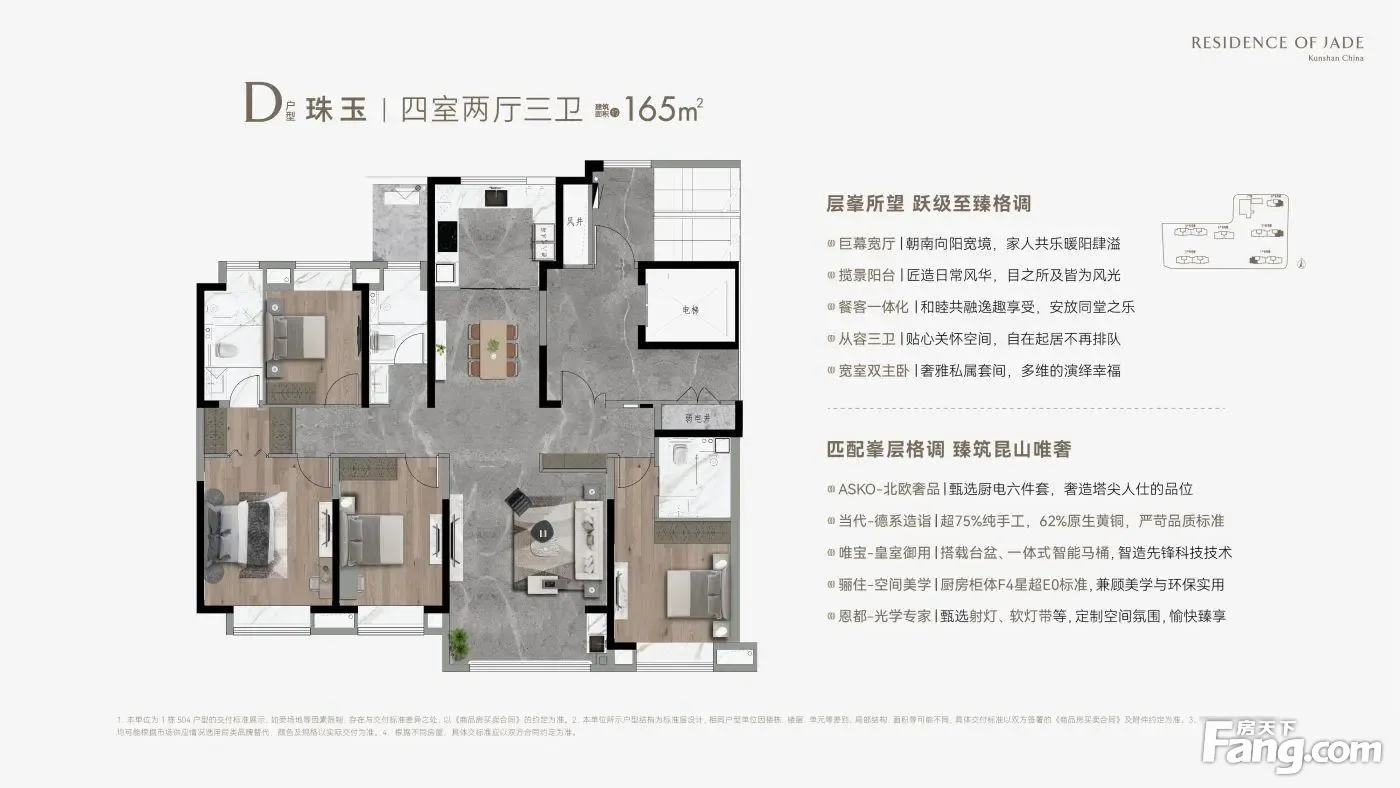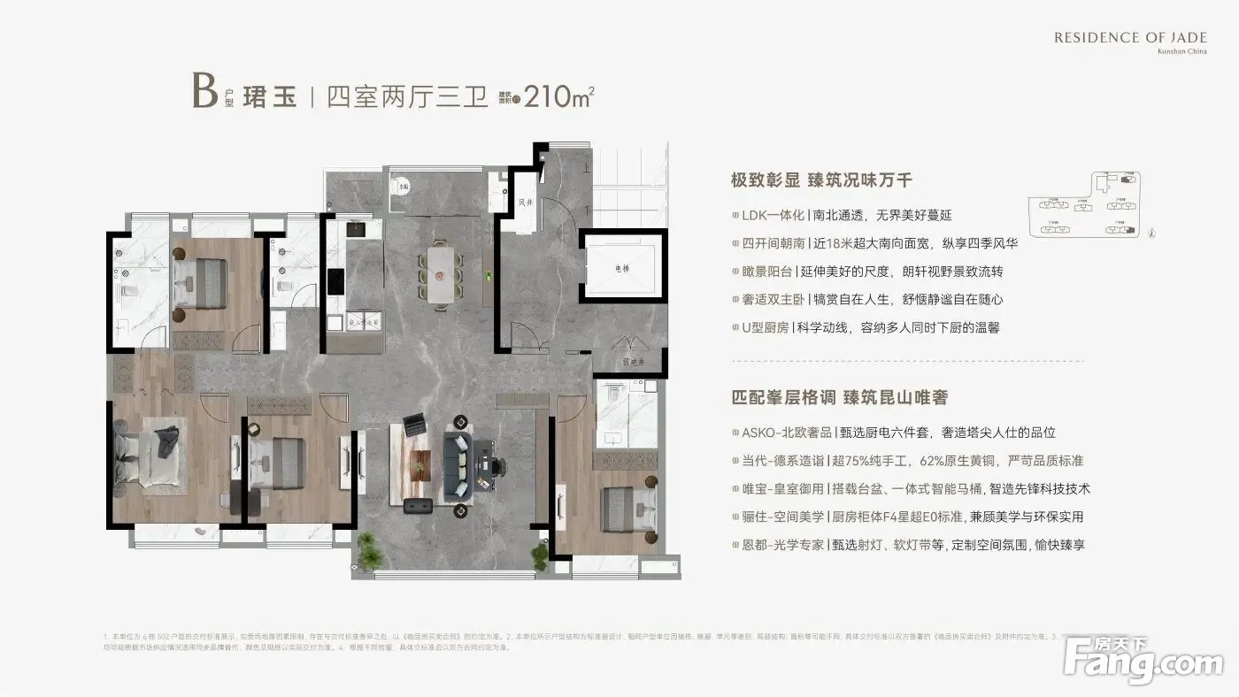 面积朝向:三开间朝南;南北通透户型简介: 1、4房市场主力改善户型,实用大四房,一家三口,或者三代同堂,尽享温馨; 2、通透情况:户型方正,正宗南北通透,双朝南宽景阳台,随时沐浴阳光与清风; 3、主卧概括:主卧带阳台带独立卫浴,奢华阳光,溢满室内,超阔尺度,是婚房的好选择; 4、厨卫介绍:干湿分离卫生间,通透采光厨房,保持室内空气清新,提高舒适度 ?战略区位:TOD枢纽+生态绿廊? ?轨交覆盖?: ?接驳?:项目无缝衔接苏州S1线“祖冲之公园站”(2026年贯通苏州园区),社区负一层直通地铁安检口。 ?双线规划?:预留上海地铁17号线西延昆山接口(2030年启动建设)。 ?生态网络?: 东侧紧邻昆山西郊森林公园(2025年完成智慧步道升级,配备心率监测座椅)。 社区内打造垂直森林体系(每户阳台预埋自动灌溉绿植系统)。 科创生活圈:产城融合+全龄教育? ?产业赋能?: 2公里内昆山高新科技园(2025年入驻华为昇腾AI创新中心)。 社区配备共享实验室(可预约3D打印/VR开发设备)。 ?教育矩阵?: 幼儿园:自建9班国际蒙氏园(与伊顿教育集团合作)。 中小学:对口昆山城西实验学校(2024年中考重点率72%+STEM课程认证)。 产品力突破:模块化空间+健康科技? ?户型创新?: 78㎡三房一卫:可变形墙体设计(卧室/书房模式一键切换),得房率91%。 135㎡四房两卫:双洄游动线+星空露台(预装天文望远镜轨道接口)。 ?智慧系统?: 全屋标配“小米全屋智能2.0”:语音控制隐形收纳柜、厨房AI火警预判系统。 社区级健康:PM2.5离子瀑净化系统、电梯轿厢紫外线定时消杀。 价格与政策红利? ?专项补贴?:昆山科创企业员工享购房补贴(需提供纳税证明)。