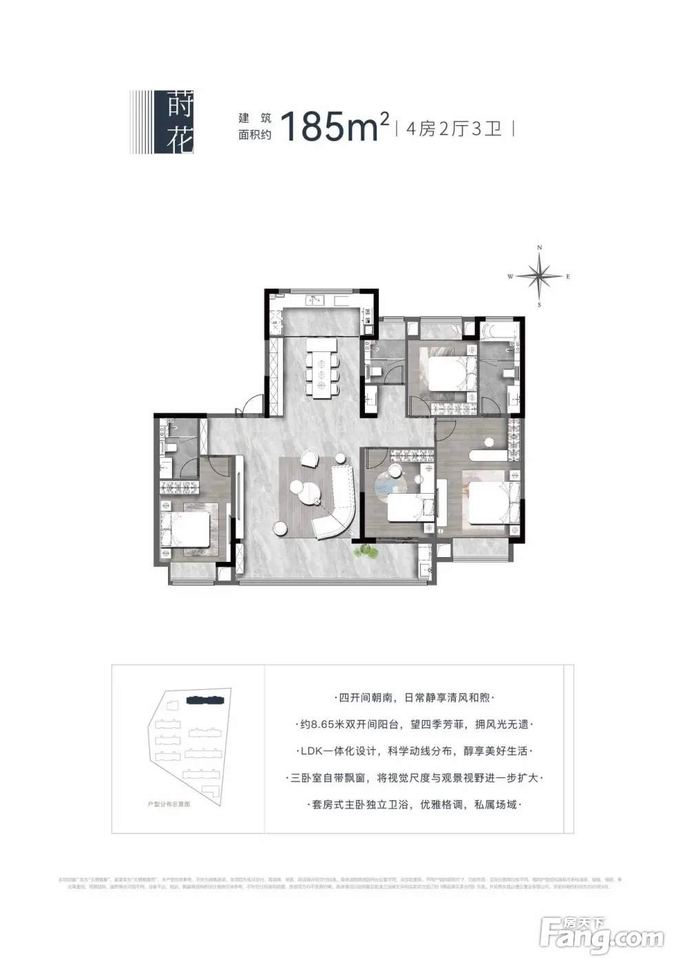 1.【房型正气】格局周正合理、无浪费面积、得房率高!四房三卫。 2.【精致装修】风格清雅别致、保护的非常好!带地暖 带中央空调 带新风系统 3.【采光充足】楼间距很大、无遮挡、通风好、采光非常棒! 4.【地段优势】位于区域繁华地段、交通便利! 5.【配套成熟】小区周边有地铁,配套特别完善成熟、附近有、医院 、卖场、菜市场等!