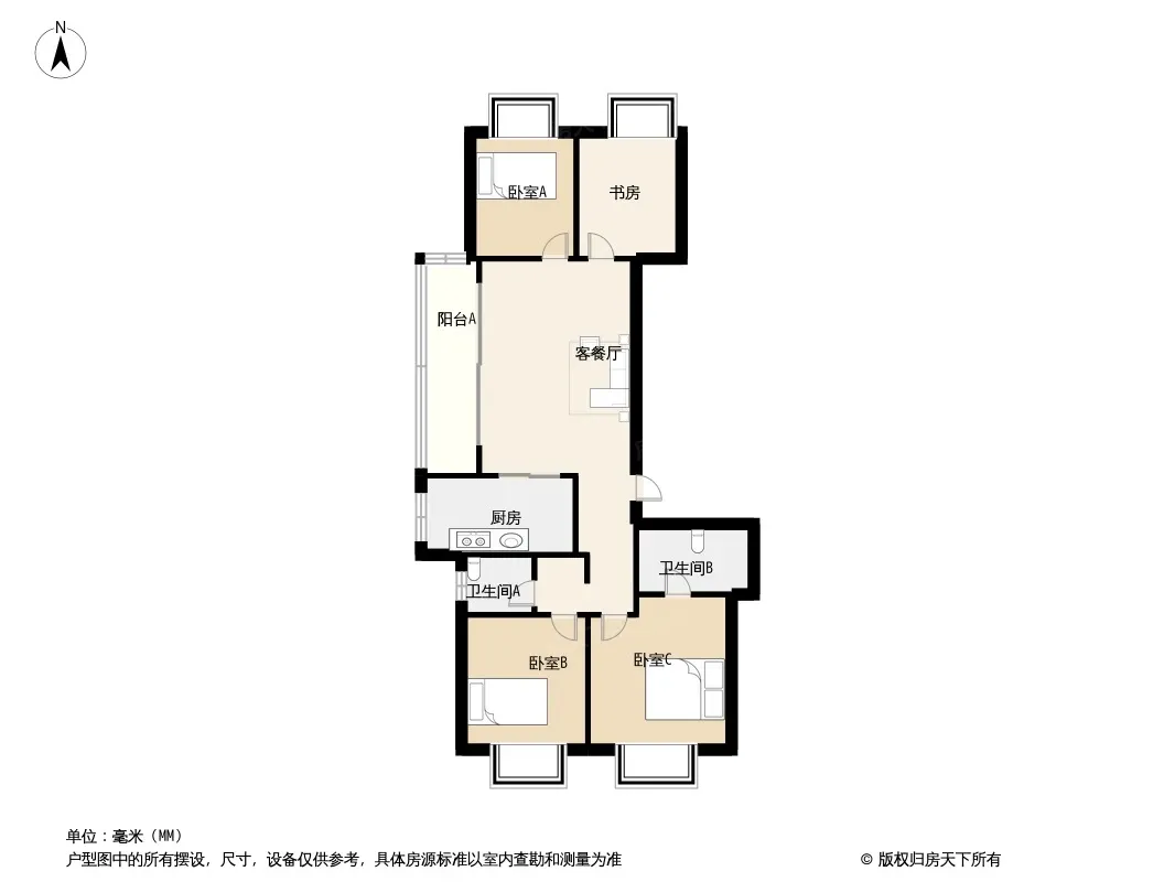 户型齐全,主打全明格局,户型方正三居