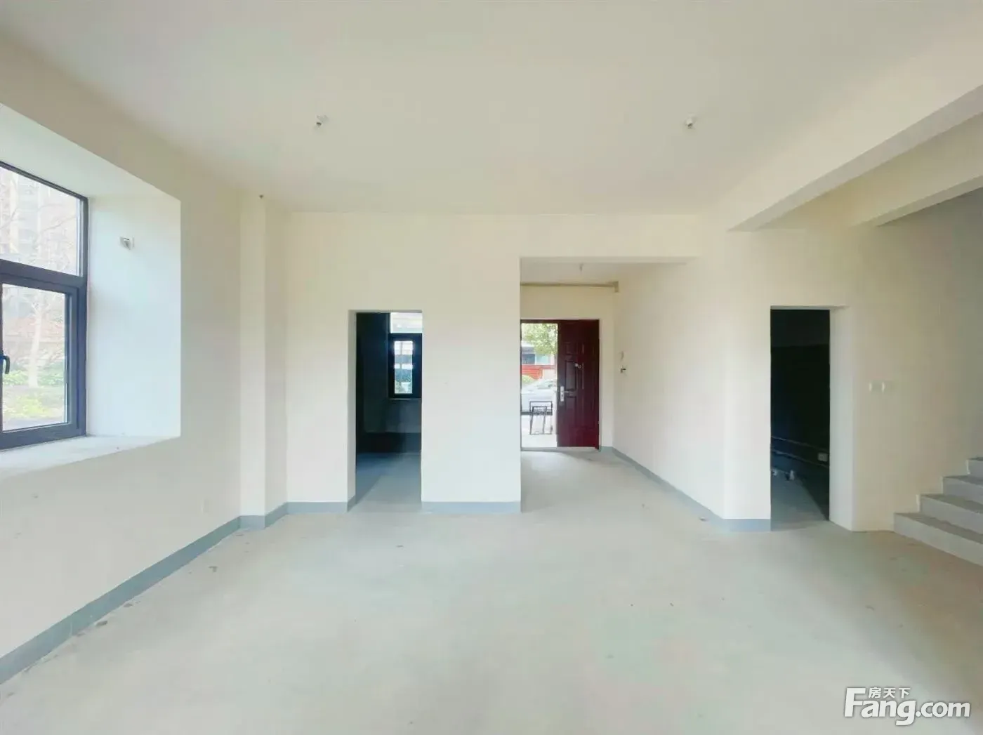 户型:双拼别墅,地下一层 地 三层前后带花园。4房2厅3卫 户型方正南北通透 一楼:前后带花园,南进门带入户南花园。进门就是客厅(目前是两层挑空6米),北边是厨房和餐厅+一个卫生间,餐厅出去就是北花园; 二楼:2房1卫,客厅挑空的部分后期可以自己浇筑起来做成房间,过道边 设计有一个共用的卫生间,次卧朝北,户型格局南北通透; 三楼:主卧朝南带独立的卫生间 书房和设计有衣帽间,一个客卧朝北,楼顶是斜顶