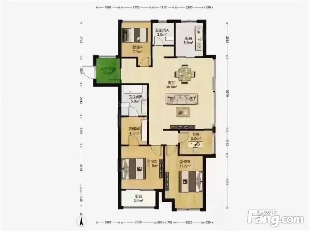 户型齐全,主打南北通透,全明格局三居