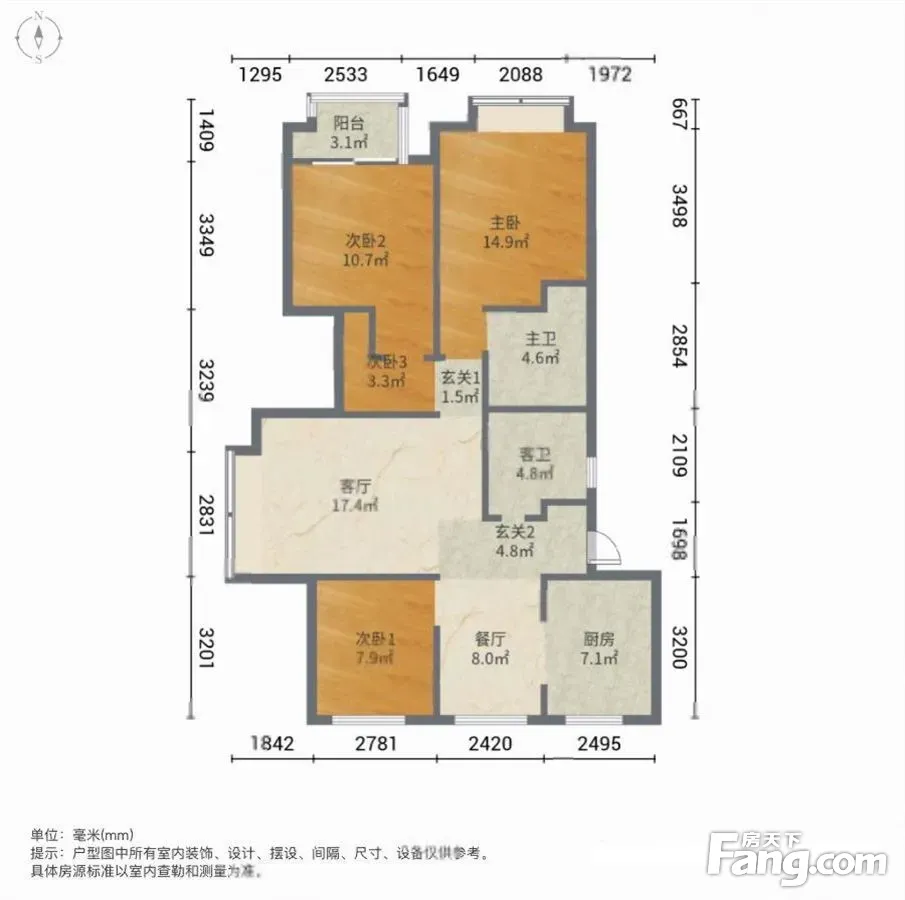 户型齐全,主打户型方正,明卫,明厨,双卧朝南,主卧朝南三居