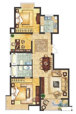 户型齐全,主打南北通透,客厅朝南,主卧朝南四居