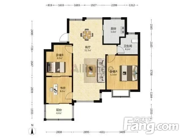户型齐全,主打明卫,明厨,客厅朝南,主卧朝南二居