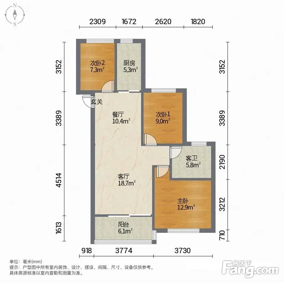 户型齐全,主打户型方正,明卫,明厨,双卧朝南,主卧朝南三居