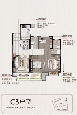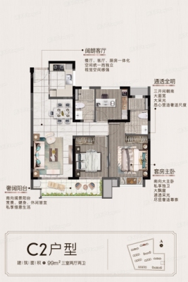 户型齐全,主打全明格局,户型方正三居