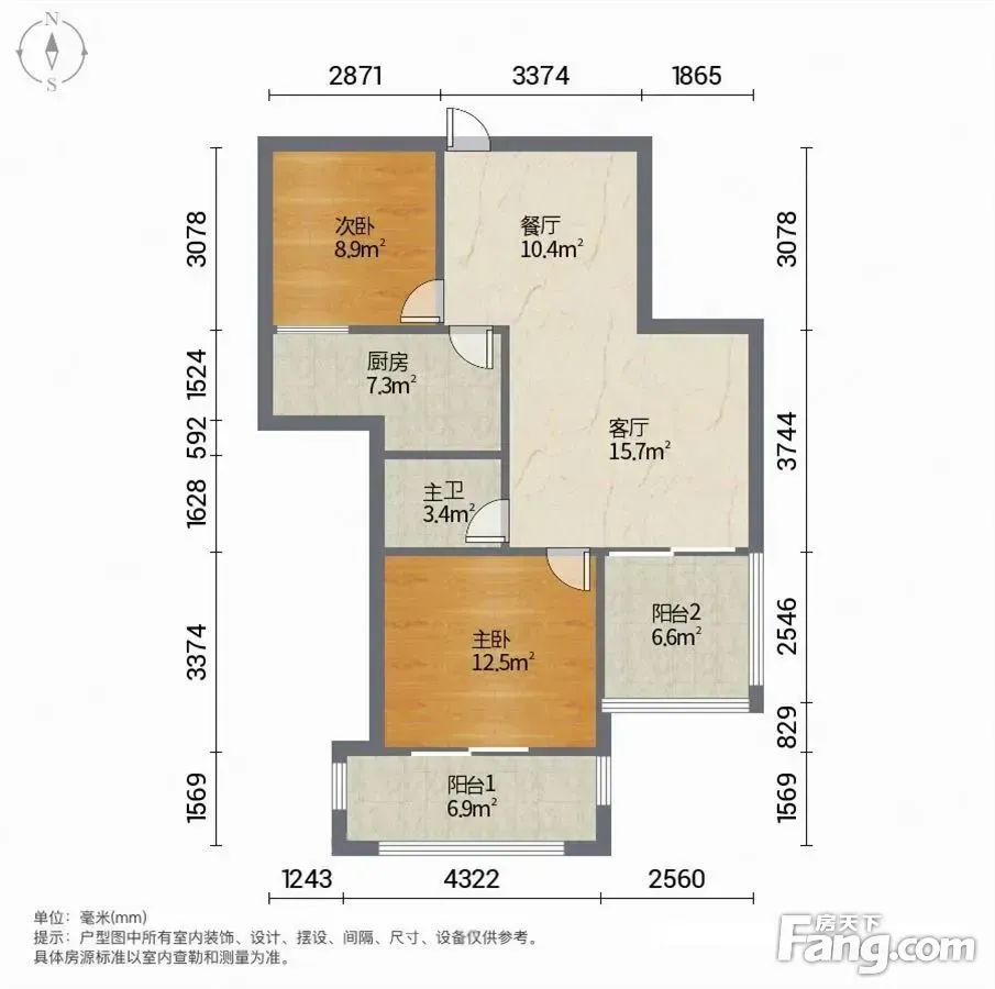 户型齐全,主打户型方正,明厨,明卫,客厅朝南,双阳台二居
