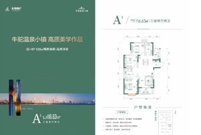 牛驼温泉小镇户型主要有116平-122平的全明格局,南北通透,户型方正,动静分离,采光充足,客厅朝南,主卧带卫,双卧朝南的三居 。