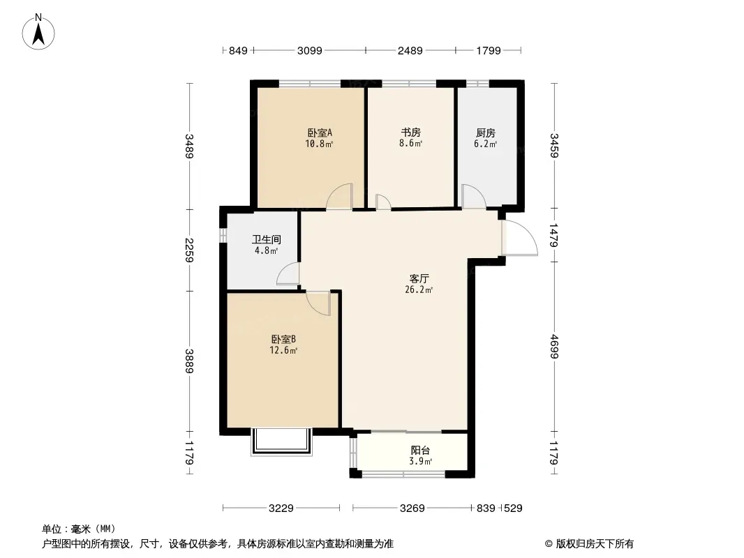 户型齐全,主打客厅朝南,卧室朝南三居