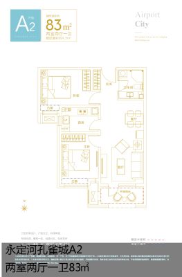固安 永定河孔雀城航天首府 2室1厅 83.00㎡ 赠车位