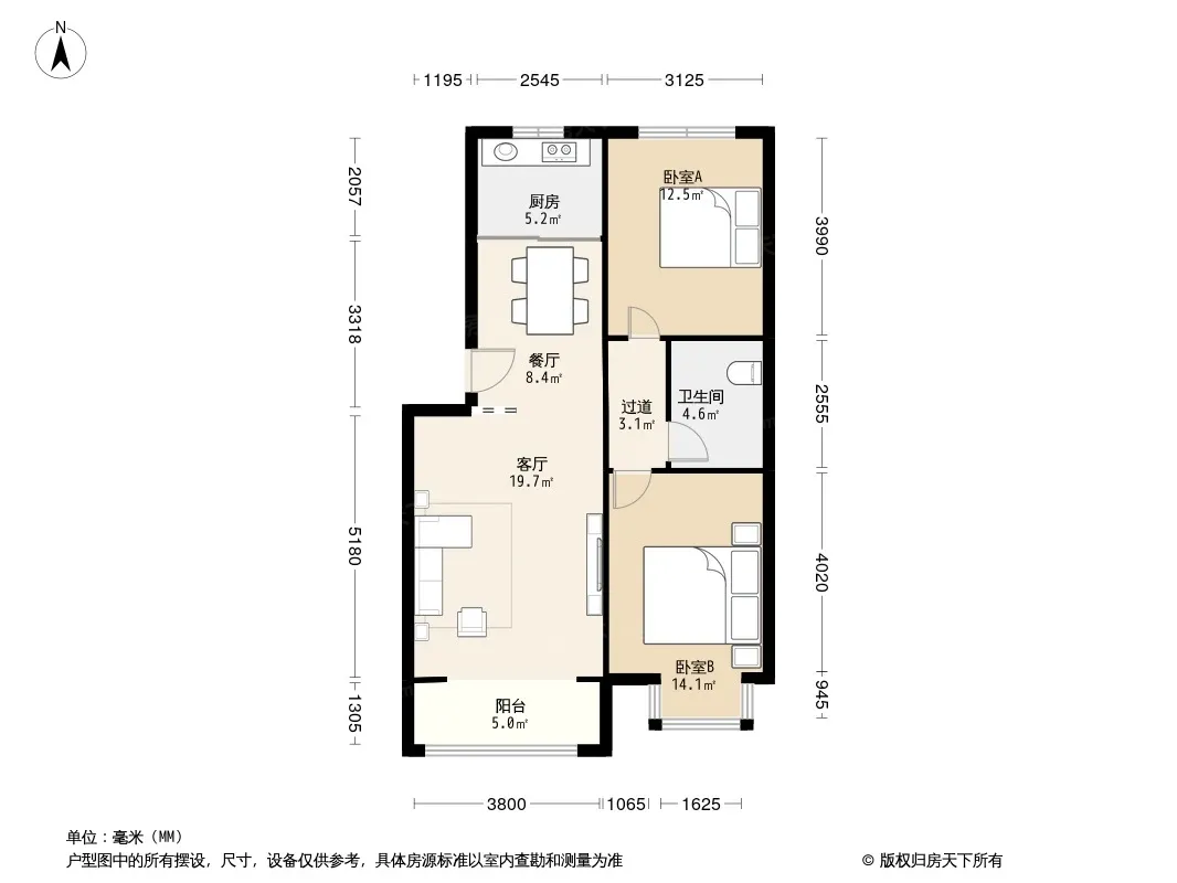 户型齐全,主打户型方正,明厨,主卧朝南二居