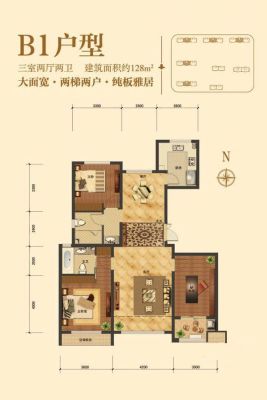 核心卖点 -南北通透,清风自然入室,阳光充足 -餐厅、客厅一体,空间敞亮,彰显主人气度 -客厅连接宽景阳台,采光、通风、美景入帘 -主卧大幅飘窗,更大采光量、睡眠更舒适 -方正厨房,L型操作台设计、烹饪更贴心