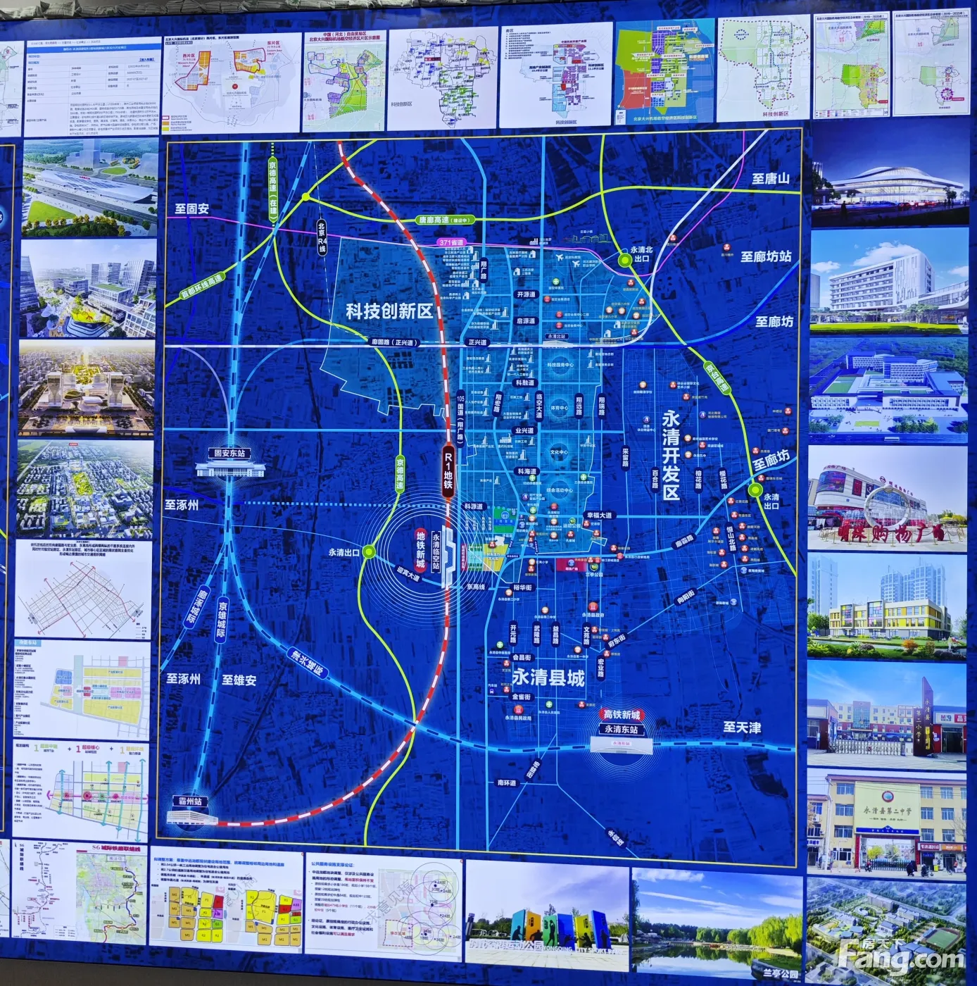 区位分析: 执首科技创新区 ️15公里新机场 150平方公里临空经济区 8.6万亿GDP,带动百万级人口导入 第4代临空经济区是以机场为核心的航空大都市 也是以科技创新为核心的新经济增长极。 产业之城 经济腾飞发动机 互联网+智能制造业、电子商务、服装产业、智控产业、空港经济服务业,千亿元产业投入,经济增长的强力发动机。 生态之城 享健康人居生活 森林覆盖率达43%,居华北平原县之首,拥有华北平原面积的万亩森林和草场,被誉为【京津走廊上的绿色明珠和天然氧吧】。 四轨道四高速 一站北京 出京首站 R1地铁、廊涿城际、京雄城际、津兴城