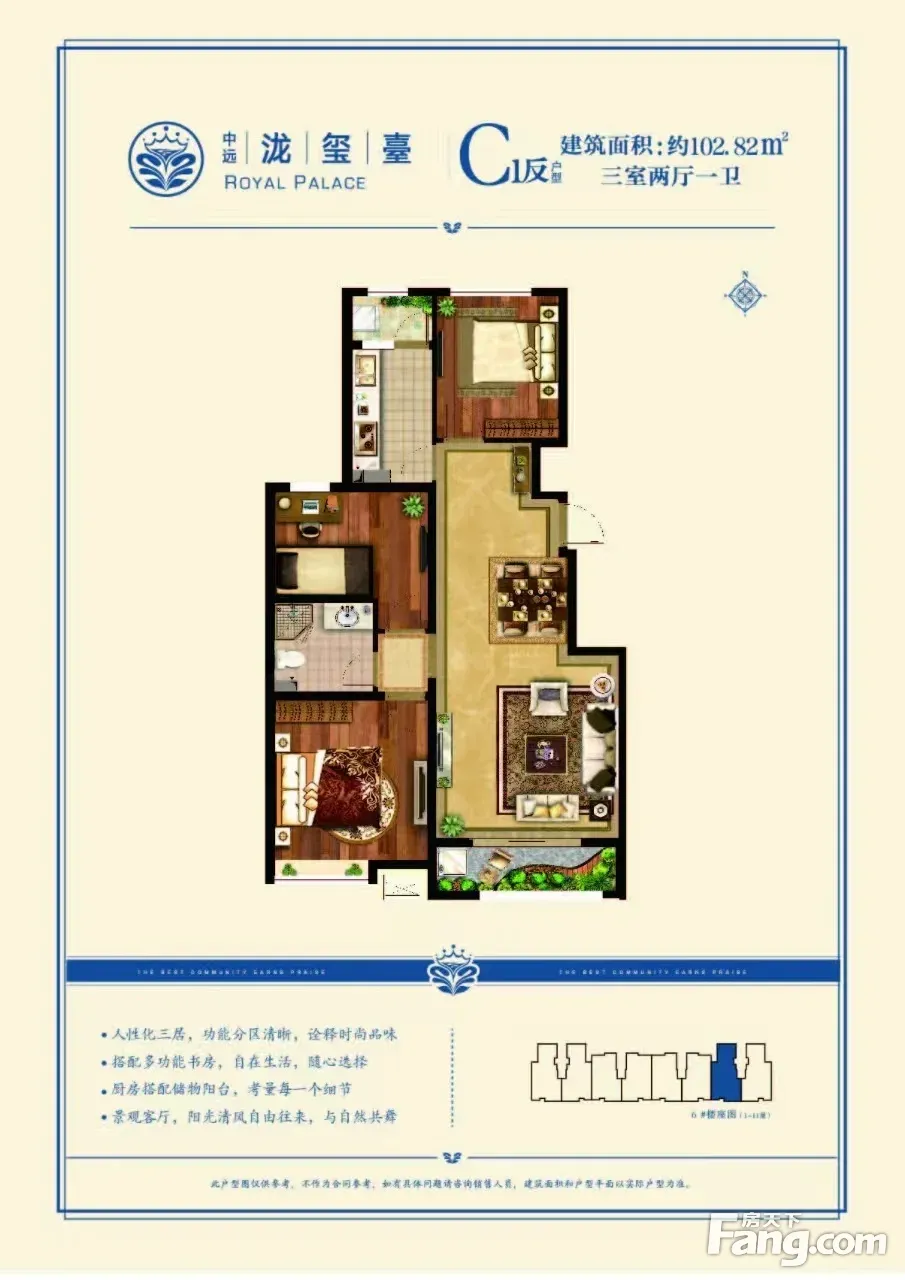 户型齐全,主打南北通透,户型方正三居