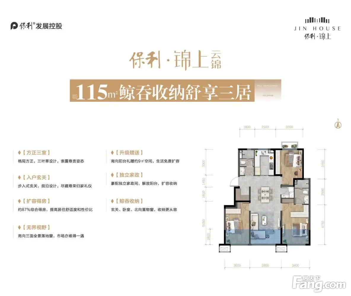 【108㎡三室两厅两卫 臻席洋房户型】 【科学布局】厨餐客阳台南北一体,全屋通透明朗 【升级赠送】南向卧室、客厅礼赠约9㎡,“屋”超所值 【扩容得房】约93%综合得房,尊享奢阔空间体验 【收纳体系】玄关/卧室/北向设备平台多处置物空间,从容收纳 【独立家政】独立家政间,从容有秩,尽显洋房尊贵 【无界视野】南向三面落地窗,减少隔断,主卧270°落地窗