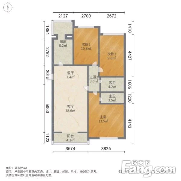 户型齐全,主打户型方正,明卫,明厨,客厅朝南,主卧朝南三居