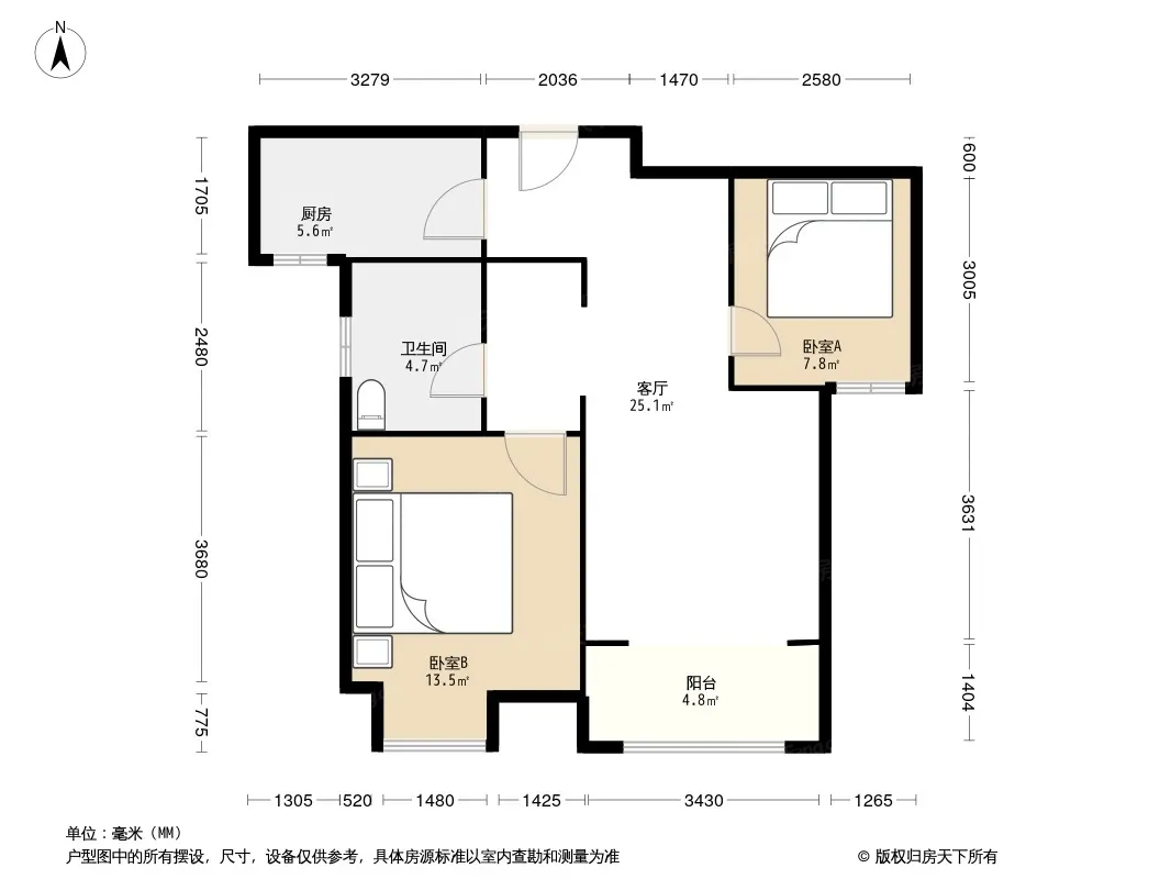 房屋拥有相对宽松的尺寸,布局通透,动静分离
