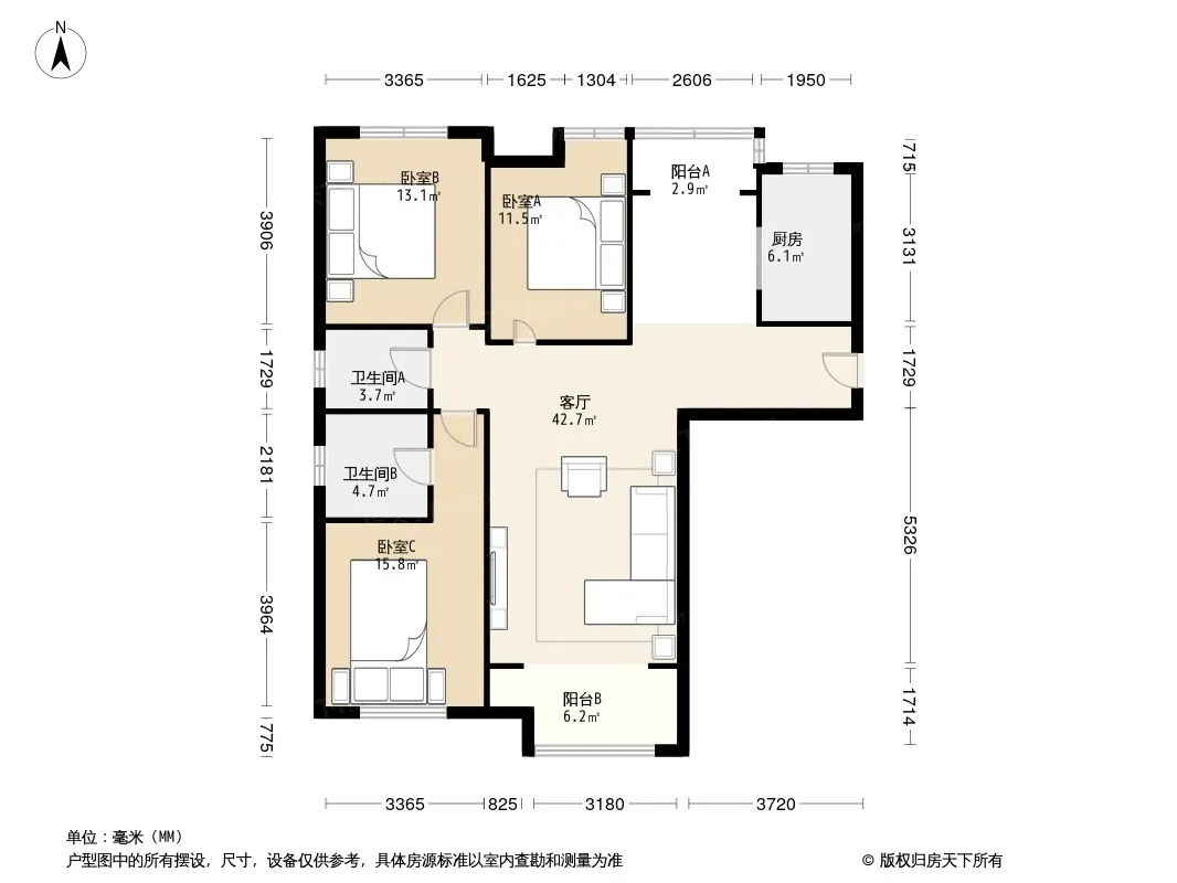 房屋拥有相对宽松的尺寸,布局通透,动静分离
