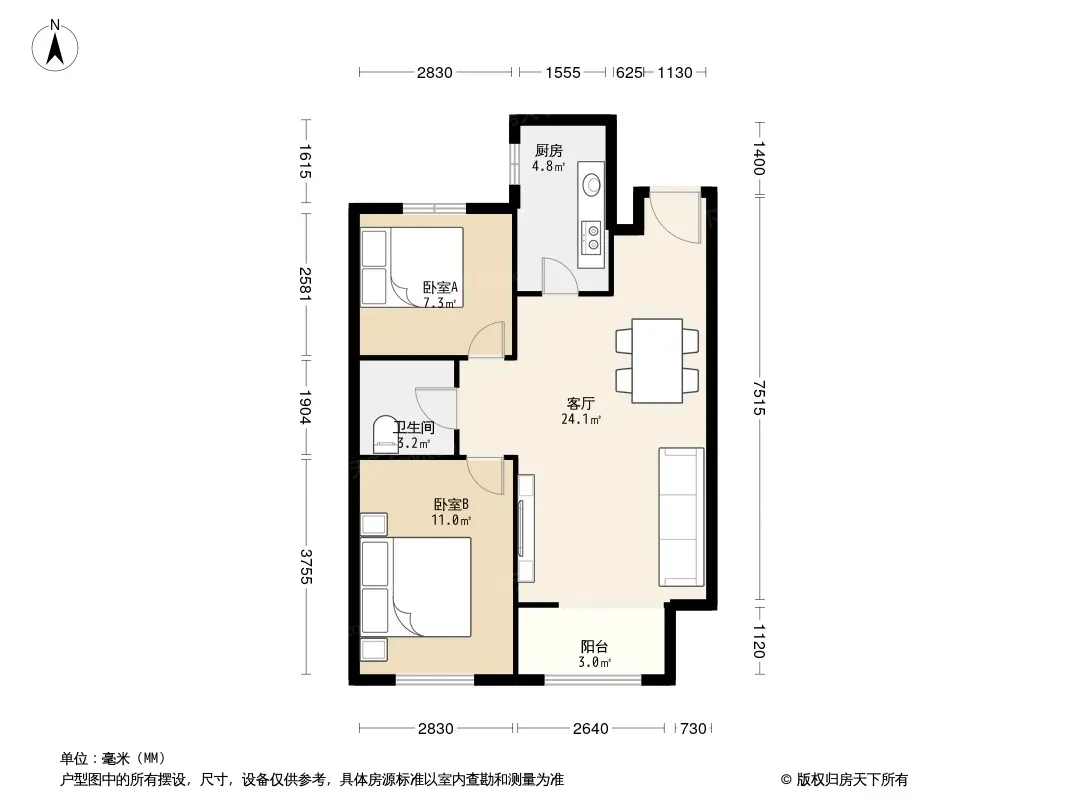 房屋拥有相对宽松的尺寸,布局通透,动静分离