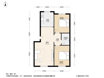 户型齐全,主打明厨,客厅朝南,主卧朝南二居
