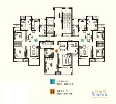 户型齐全,主打户型方正,双阳台一居