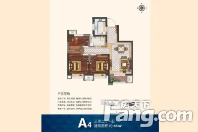 户型齐全,主打南北通透,客厅朝南三居