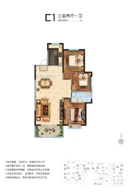 户型齐全,主打南北通透,客厅朝南,主卧朝南三居