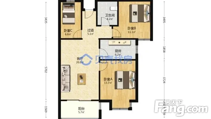 3室2厅1卫