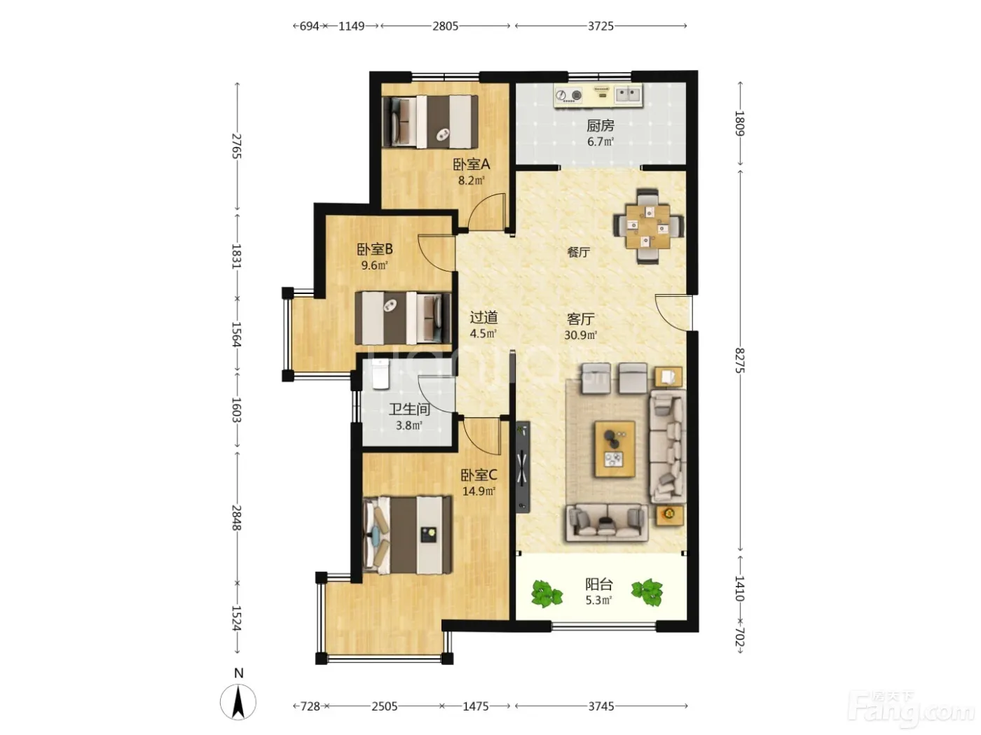 3室2厅1卫