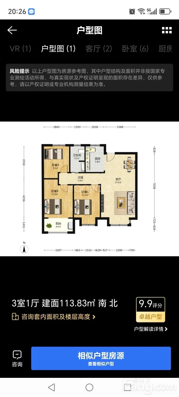 *获取完整户型报告,同时会有免费语音讲解服务