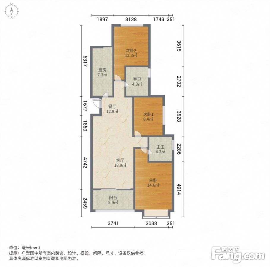 户型齐全,主打全明格局,三开间朝南三居