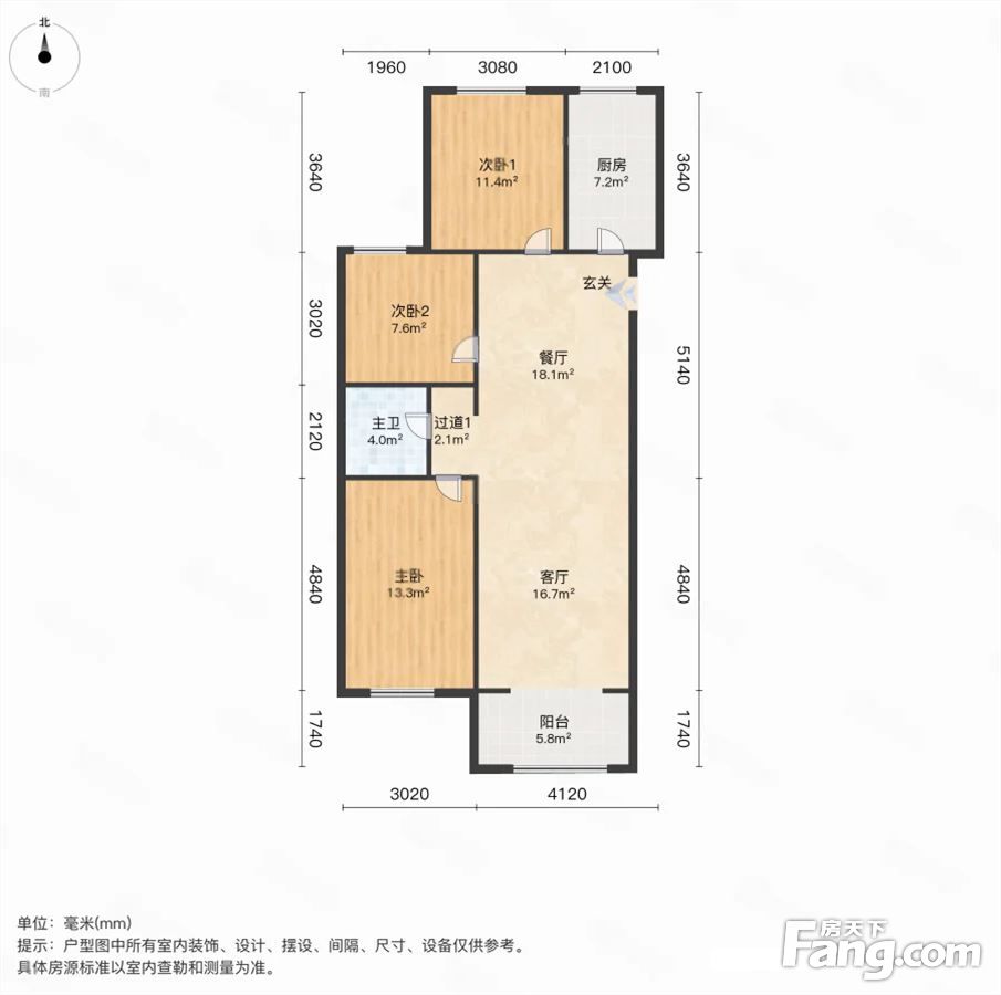 户型齐全,主打南北通透,户型方正,主卧朝南三居