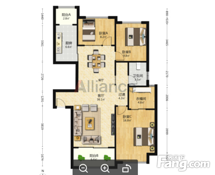 户型齐全,主打户型方正,明卫,明厨,主卧朝南三居