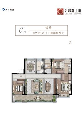 天元锦都上府户型主要有161平-177平的南北通透,客厅朝南的四居 、142平-142平的南北通透,客厅朝南的三居 、198平-198平的南北通透,客厅朝南的五居 。